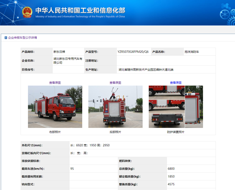 根據(jù)《道路機(jī)動車輛生產(chǎn)企業(yè)及產(chǎn)品公告》(第335批)擬發(fā)布內(nèi)容和《享受車船稅減免優(yōu)惠的節(jié)約能源使用新能源汽車車型目錄》(第十八批)公示內(nèi)容中科院看到,湖北新東日消防車廠家:國六五十鈴2.5噸泡沫消防車已經(jīng)公示,正式公告即將下發(fā),有意購買國六五十鈴2.5噸泡沫消防車的用戶可以購買了。