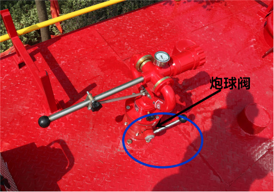 炮球閥打開一半,處于半開轉態(tài)。該閥門在車頂上方