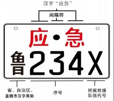 應急救援專用號牌分為汽車號牌和摩托車號牌兩種,汽車號牌每副兩只,分別懸掛在車輛前后部;摩托車號牌為單只,懸掛在車輛后部。